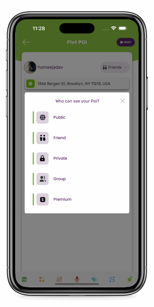 PoiSpot allows you to set individual privacy levels for each post. You can save locations privately like a personal Rolodex or share them with a small group or the public. You get to control who can access your posts based on permissions, ensuring your personal photographs are only available to your personal networks.